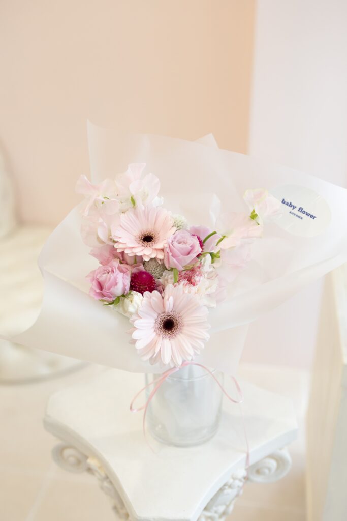 花材は一例となりますので季節や仕入れ状況に合わせてイメージに沿った花束をご用意いたします